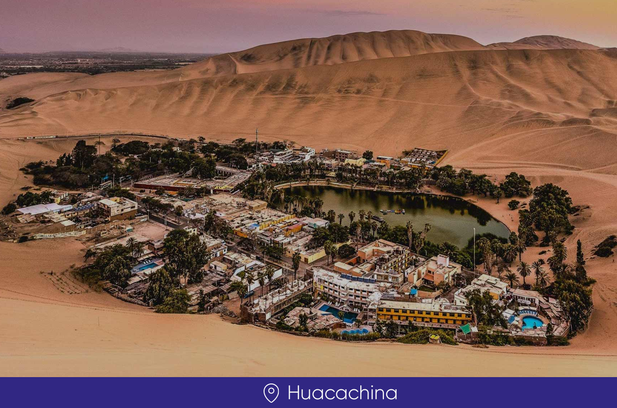 Degustación de un plato de la región en un restaurant campestre, luego pasaremos a visitar la famosa laguna de la huacachina, mas conocida como el oasis de américa, donde realizaremos un deporte de aventura sobre las dunas mas extensas del sur del Perú (sanboard and buguies).